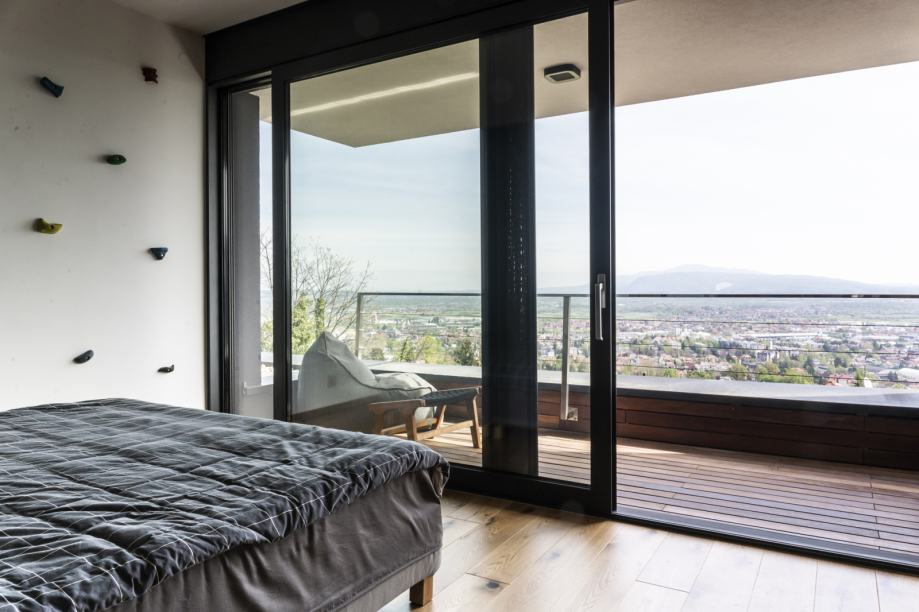 Kvalitetno građena kuća na izuzetnoj lokaciji i sa sjajnim pogledom nalazi se u neposrednoj blizini park šume Anindol (10 minuta pješke od glavnog trga u Samoboru) izgrađena je 2022. godine na parceli od 369 m2. Neto površina kuće je 90m2 + 40m2 decking terase + 120m2 uređenog vrta na ravnoj površini + uređeni prilazni kolni put od 100m2. Svi materijali ugrađeni u kuću su visokokvalitetni od podova (I.klasa parket, talijanske keramike), zidnih obloga itd.