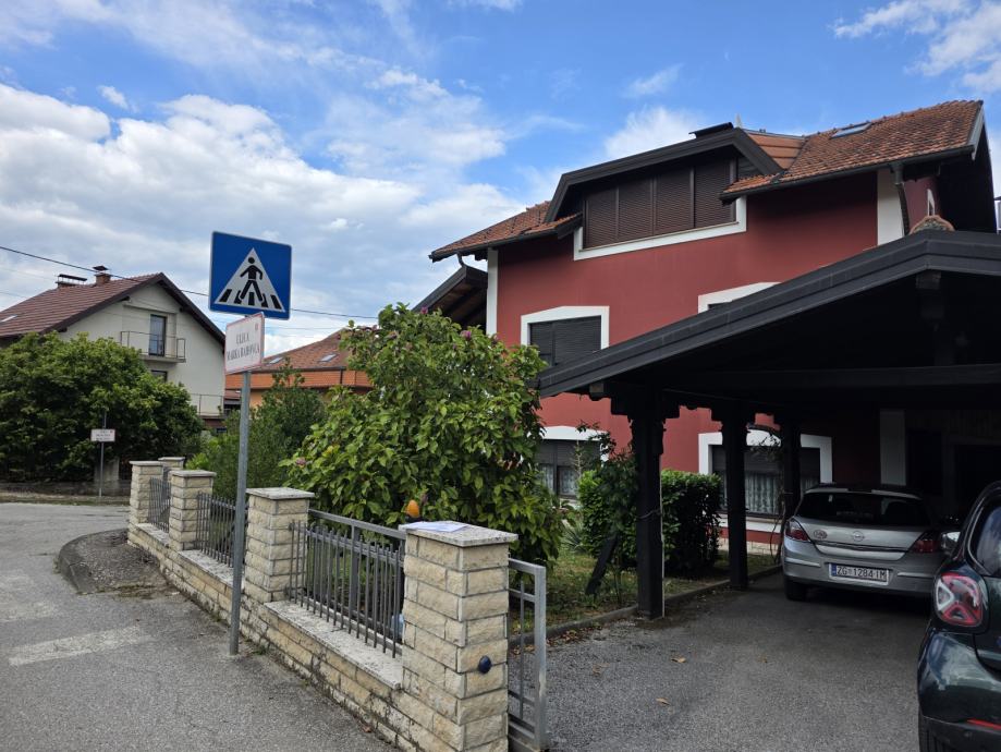 Giznik, ulica Dragutina Domjanića 8, prekrasna odlično građena dvokatnica iz 1980. godine sa dvije ogromne nadstrešnice, poslovnim dijelom, parkingom i okućnicom na Top poziciji /pristup iz dvije ulice/ na Samoborskom Gizniku.