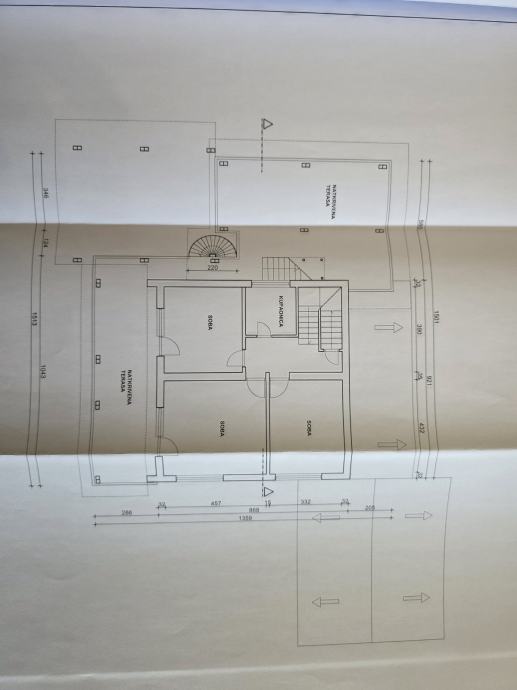Kuća se sastoji od prizemlja 154 m2, 1. kata 124 m2 i2. kata 73 m2.+ dvije velike natkrivene terase.