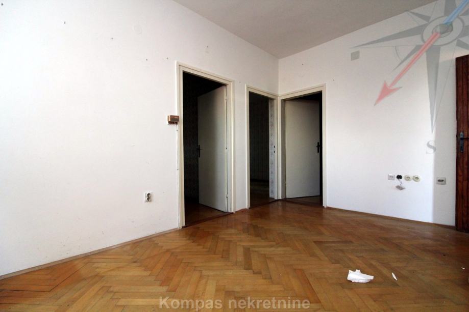KAT: kuhinja povezana s dnevnim boravkom, kupaonica, dvije sobe, garderoba, dva balkona.