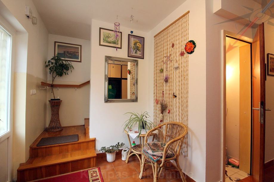 Djelomično namještena dvojna kuća na četiri etaže, ukupne površine 360 m2. Dimenzija 10 x 9 m, izgrađena na parceli sa blagim padom površine 556 m2.