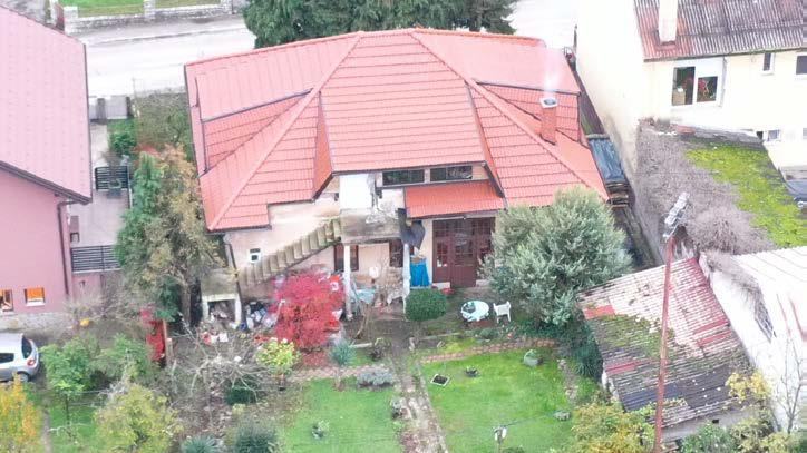 • Sama kuća je smještena na prednjem dijelu parcele i sastoji se od visokog prizemlja i potkrovlja.