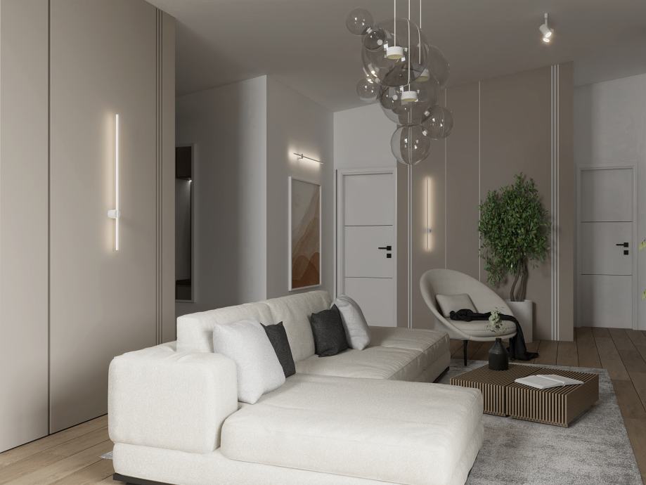 Moderna gradnja: armirano-betonska konstrukcija, vrhunska stolarija (Rehau, 3-slojno staklo) i ambijentalna LED rasvjeta.