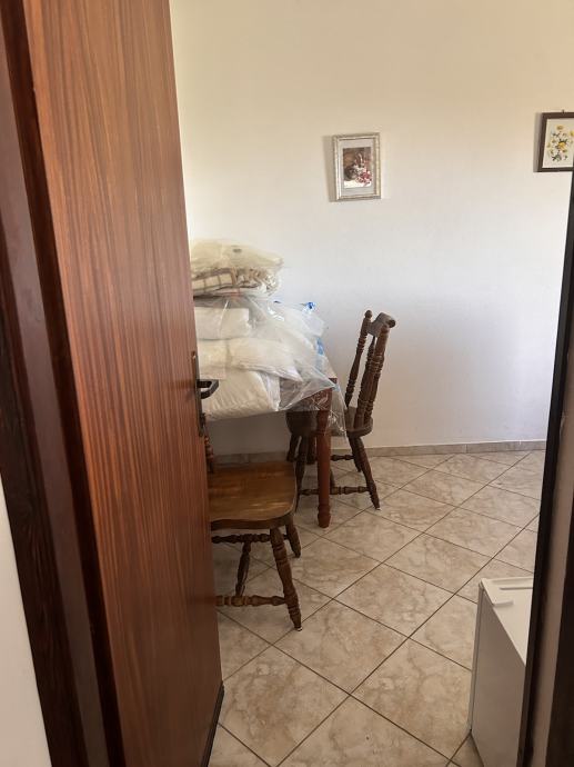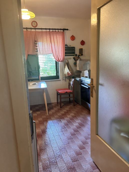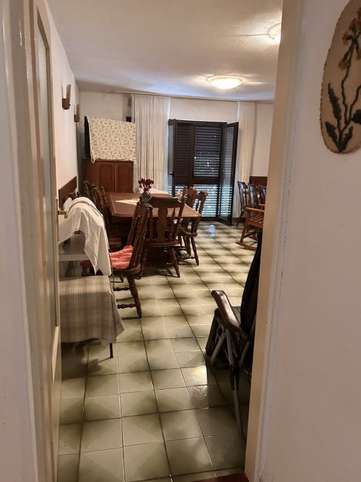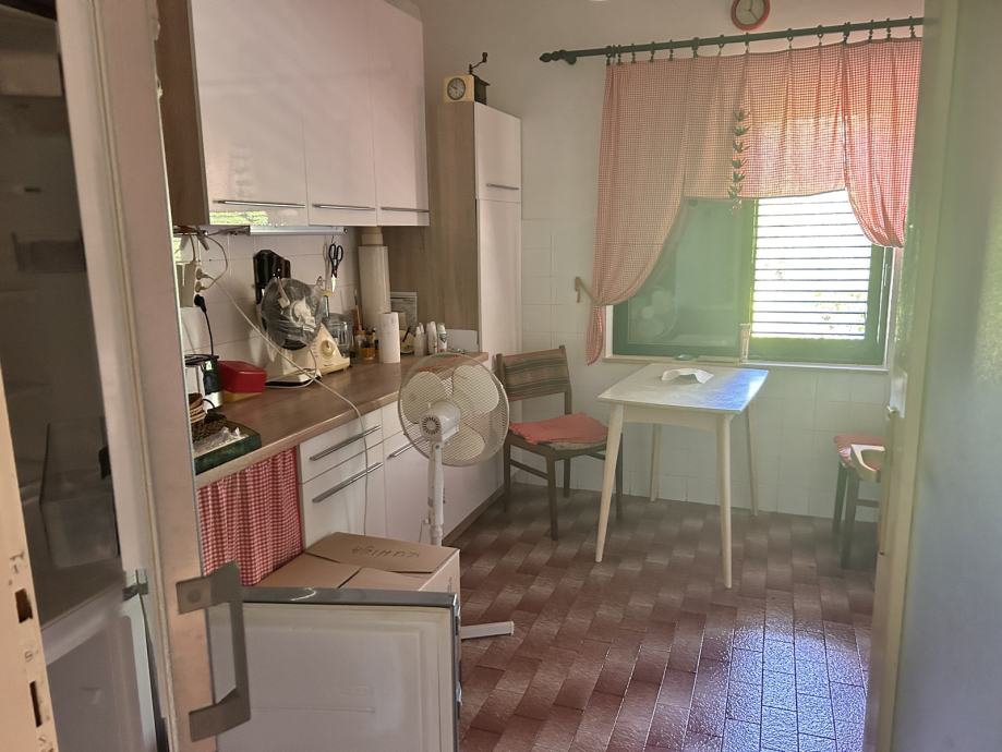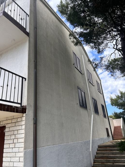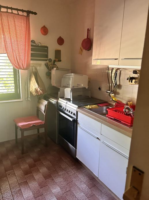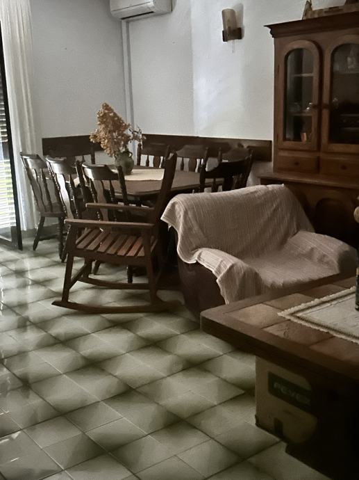 Prizemlje kuće sastoji se kuhinje, ulaznog hodnika , dnevnog boravka sa balkonima , terasom te 4 sobe, kupaone , toaleta. Na popločenoj okućnici u pozadini kuće nalazi se roštilj , iza je pogled na more, zelenilo.Ispred kuće nalazi se se također okučnica sa ukrasnim biljem i dvorište ograđeno za parkiranje više vozila .Prilaz kući je sa sporedne ceste nesmetano autom.Odlična prilika i za turističku djelatnost (obiteljski restoran sa sobama za noćenje, najam soba i sl.).Kuća je u odličnom stanju promijenjen krov prije 2 godine, PVC stolarija, primjenjene ograde na balkonima, popločene terase i stepeništa oko kuće, nove klima uredaji . Možda za nešto modernije promjeniti pločice u ulaznom hodniku. U sobama su renovirane kupaone.