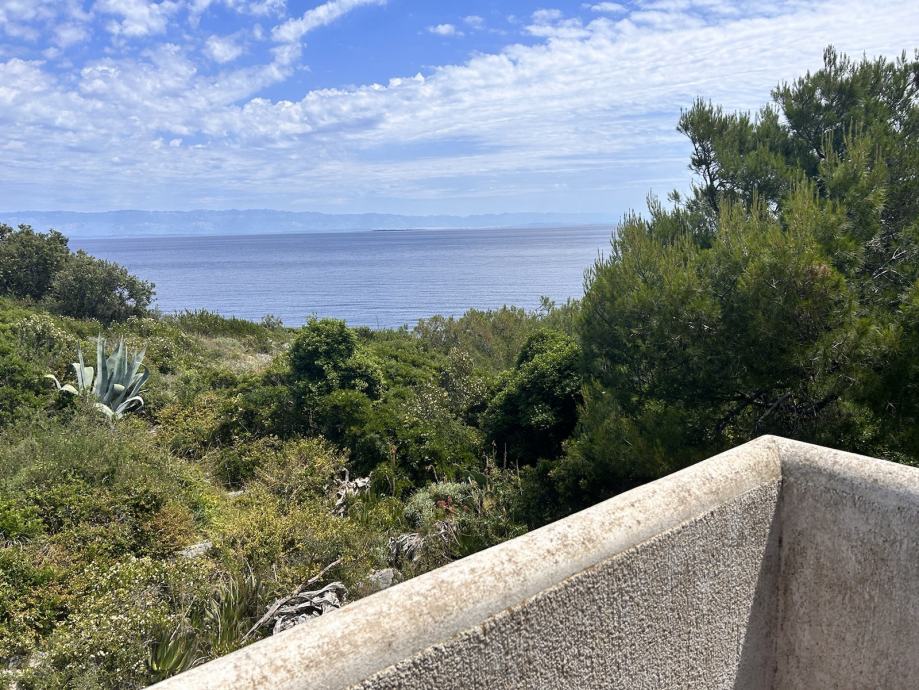 Kuća kvalitetne gradnje s pogledom na more sastoji se 2 garaže , prizemlja i kata.Kat je odvojen posebnim stepenicama i na katu se nalazi 6 soba sa kupaonicama.
