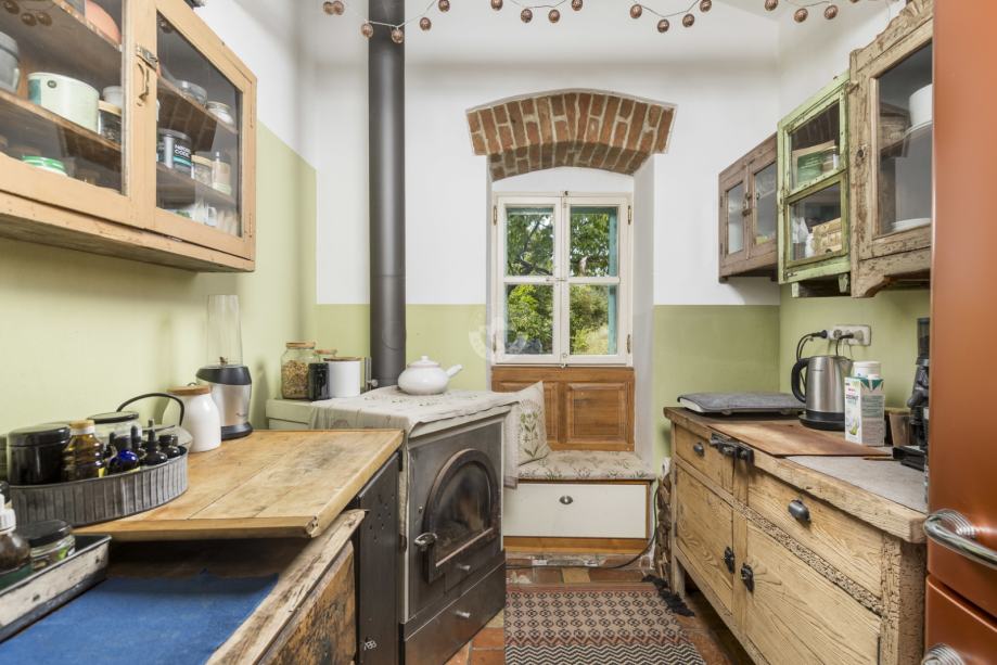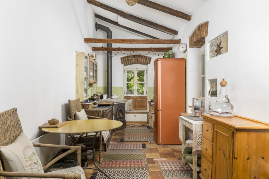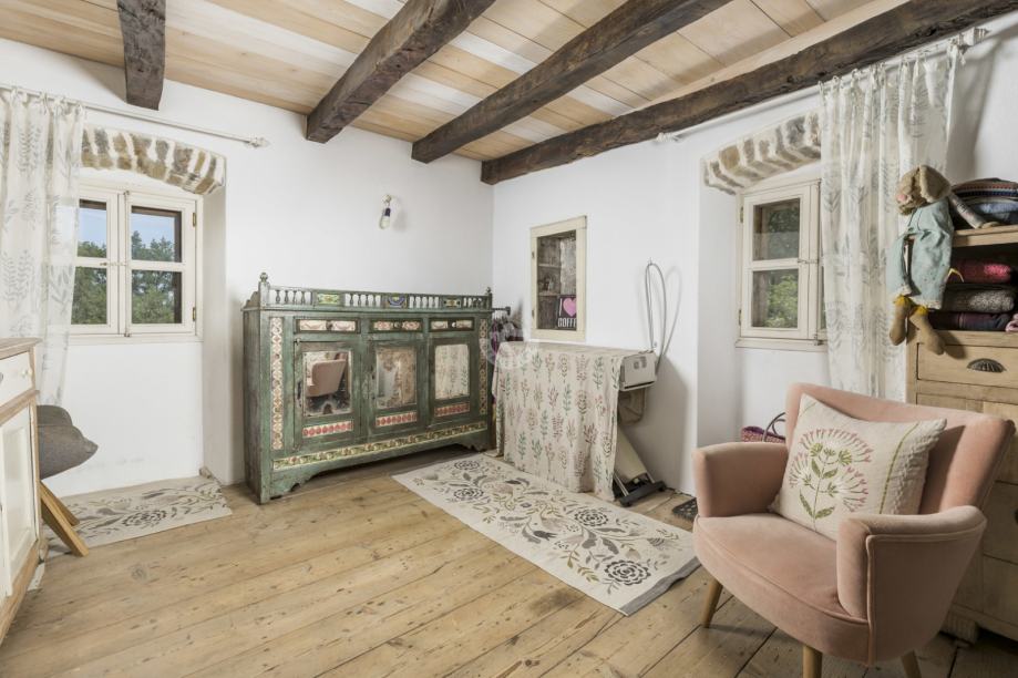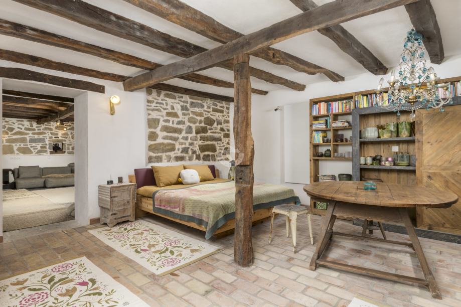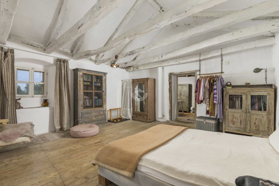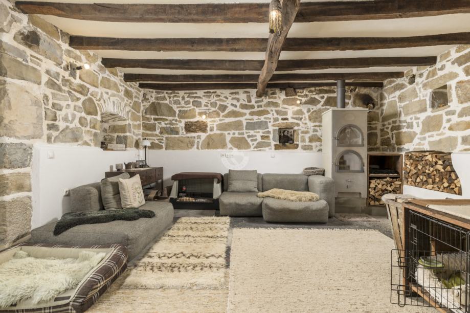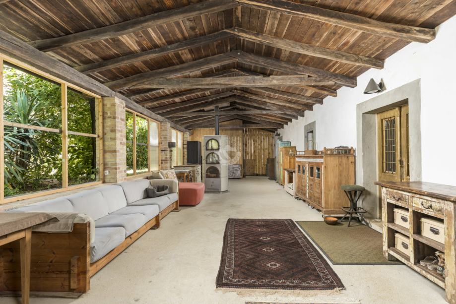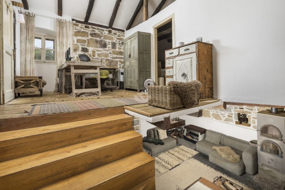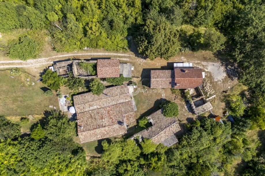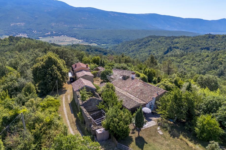 Glavni objekt je obnovljen s puno pažnje prema izvornoj prirodnoj gradnji, ukopne stambene veličine od 280 m2 i terase veličine 80m2 koja može biti preuređena u dodatne prostorije. Pristupni put završava na imanju, tako da postoji maksimalna privatnost.