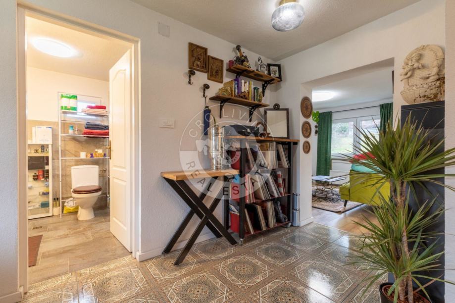 U prizemlju se nalazi prostrana soba i kupaona, posebno prilagođena za invalide, s pristupom nagibima, širokim vratima i velikom kupaonicom. Terasa ( 8,20 x 6,50 ) na prizemlju nudi miran kutak s jacuzzijem, pružajući opuštajući prostor za uživanje u prirodnom okruženju.