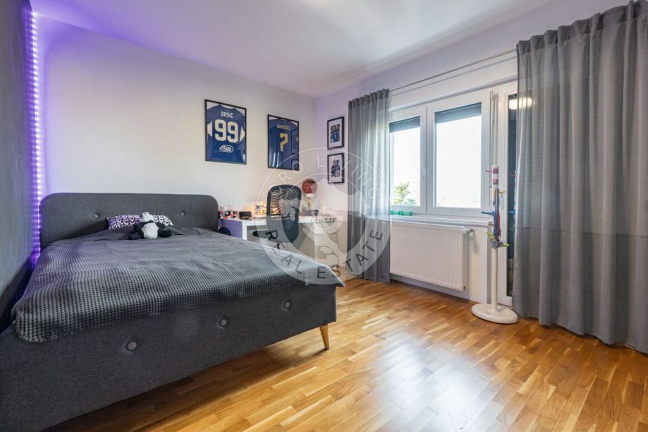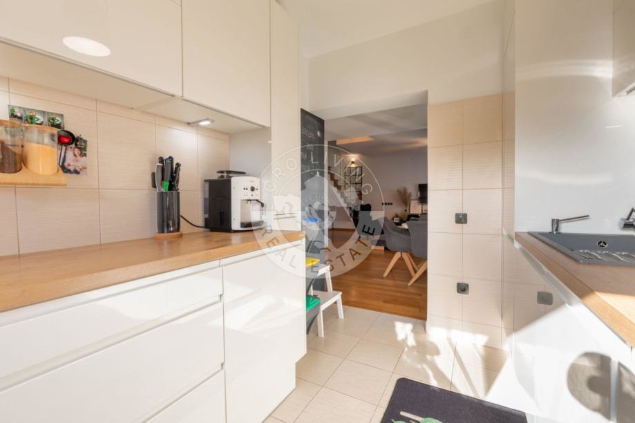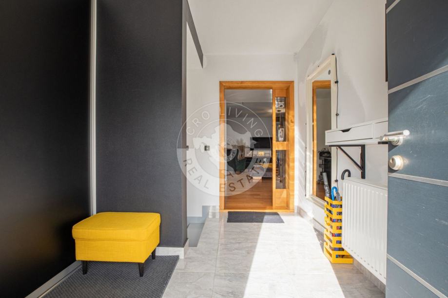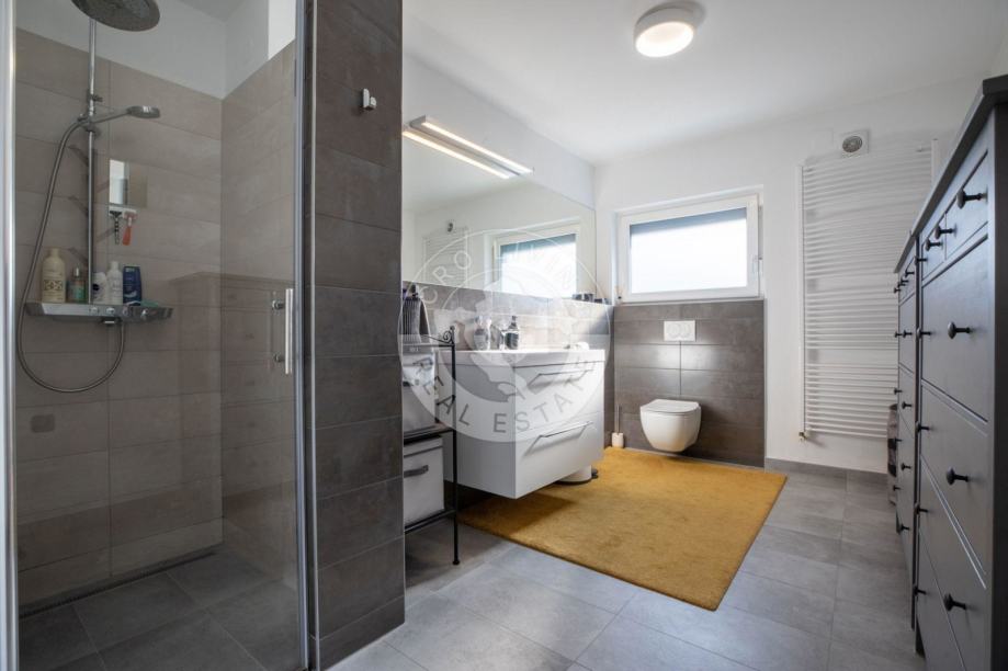 U prizemlju se nalazi dobro osmišljen raspored koji obuhvaća: hodnik, dnevni boravak, blagovaonicu i kuhinju, spavaću sobu s kupaonom, dječju sobu i dodatnu kupaonu, stvarajući tako srce doma u kojem se možete opustiti i uživati u obiteljskim trenucima.