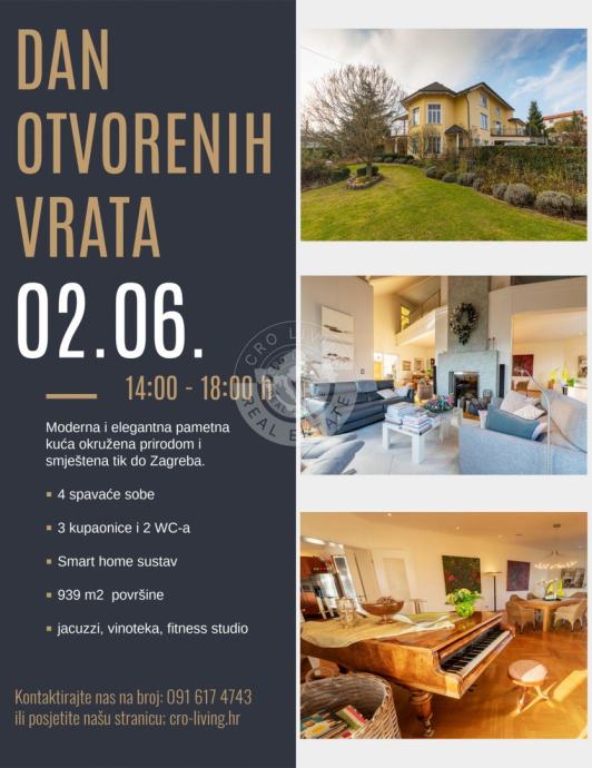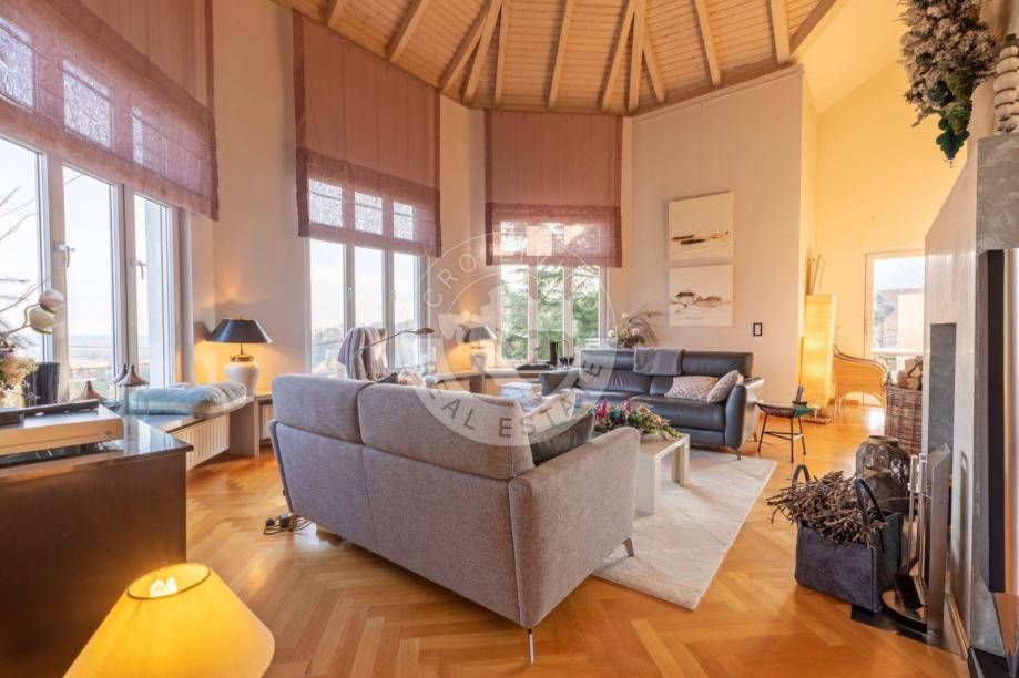 Gotovo u neposrednoj okolici grada Zagreba, u mjestu Sv.I.Zelina, smjestila se ova ekskluzivna kuća površine 939 m2. Sastoji se od djelomično ukopanog prizemlja, kata te potkrovlja uz sveukupnu površinu parcele 3057 m2.