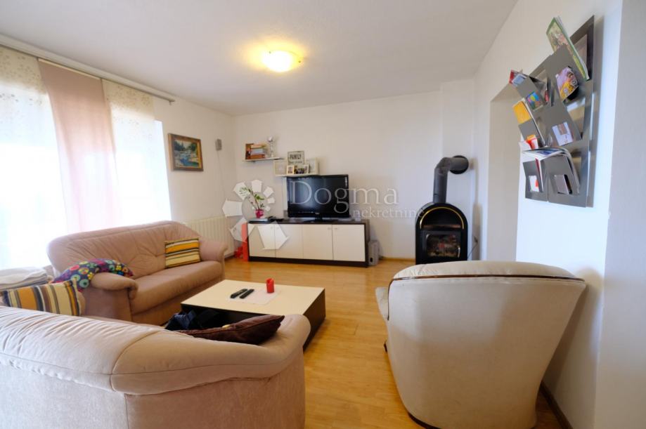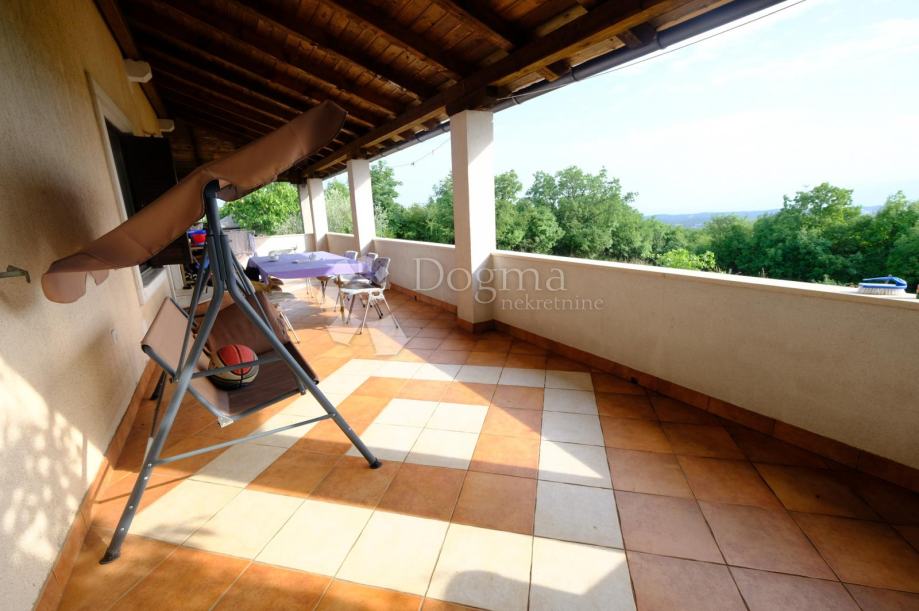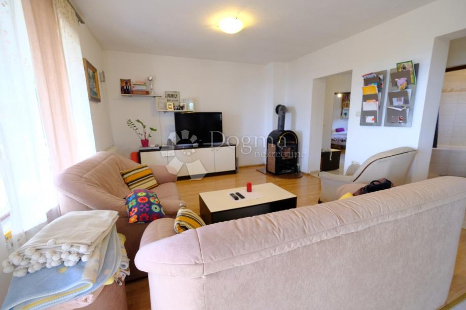 Kuća se sastoji od podruma u suterenu, velikog obiteljskog stana - tri spavaće sobe sa kuhinjom i dnevnim boravkom, dvije kupaone i velike prostorne terase duž cijelog stana sa pogledom na more, grad Kastav i zelenilo koje se kaskadno proteže ispod kuće. U visokom potkrovlju je roh bau prostor od 90 tak m2 koji može biti još jedan stan.