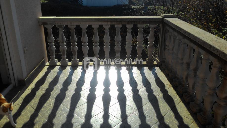 U ponudi je samostojeća kuća od 150m2 s dvije stambene jedinice. U suterenu je smještena kotlovnica od 12m2 i stan od 50m2, 1-sobni stan s dnevnim boravkom i terasom, dok je u prizemlju smješten 2-sobni stan s dva balkona i terasom.