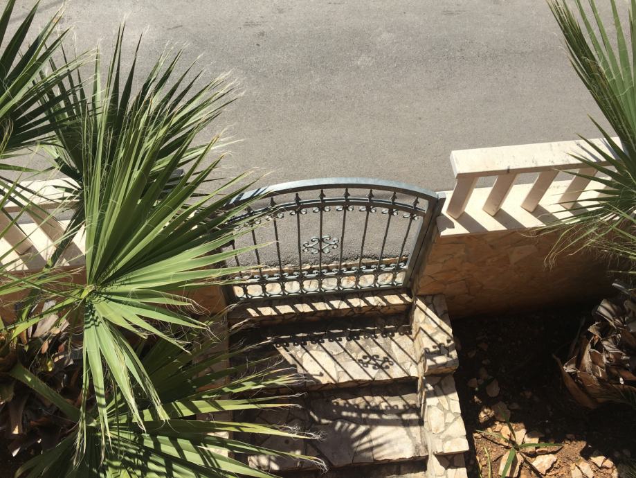 Cijela parcela koja pripada kući je ograđena kovanom ogradom (na automatsko otvaranje) te mediteranskim zelenilom.