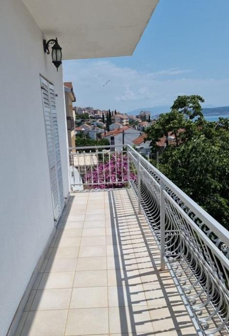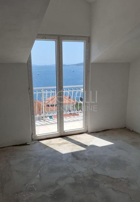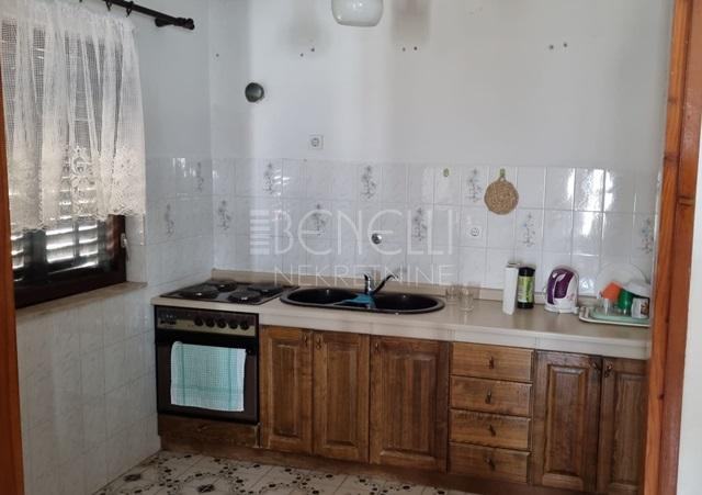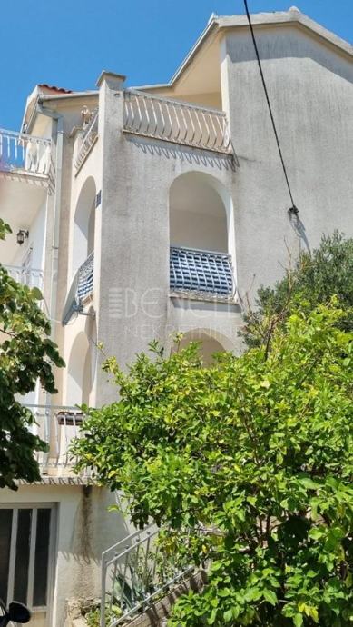 Samostojeća kuća u Seget Vranjici, 100m od mora. Objekat ukupne površine 34m2, na tri etaže. U prizemlju veliki dnevni boravak sa kuhinjom i blagovaonom, mala soba i kupatilo. Izlaz na terasu. Na prvom katu tri sobe, ostava, kuhinja, kupatilo, balkoni prema jugu. Drugi kat roh-bau, predviđeno za dva apartmana. Garaža. Pogled na more.