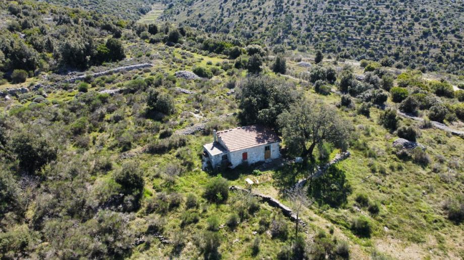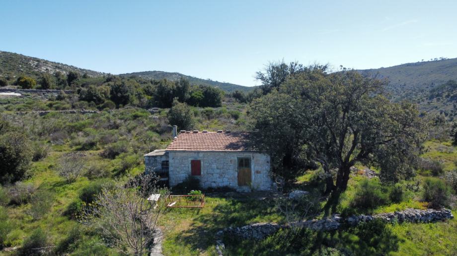 Kamena kuća na poljoprivrednom zemljištu. Nalazi se na brdu usred otoka i ima predivan pogled na more. Okružena zelenilom , udaljena je od gužve i stresa. A opet, samo 20minuta vožnje do grada Hvara.