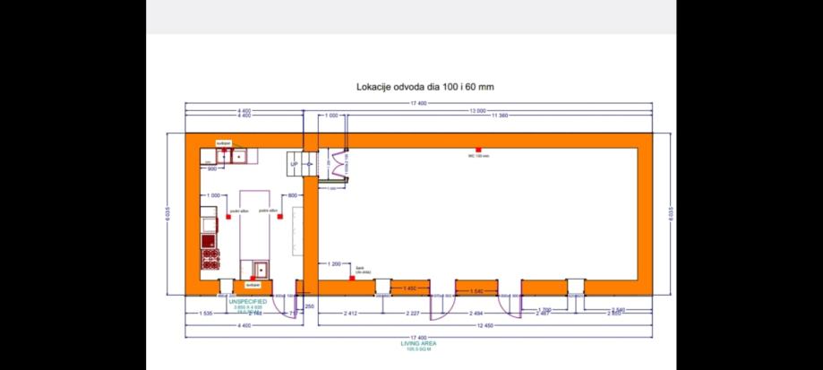 • Prostor konobe s pripadajućom kuhinjom: 80 m²