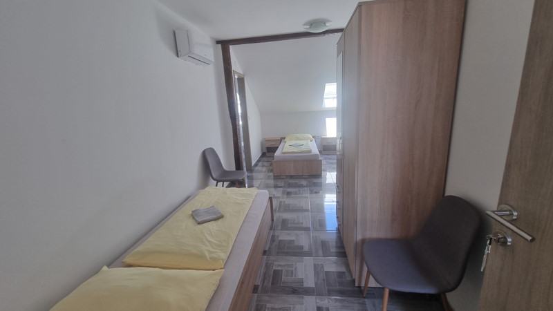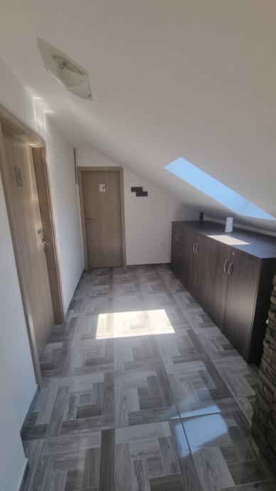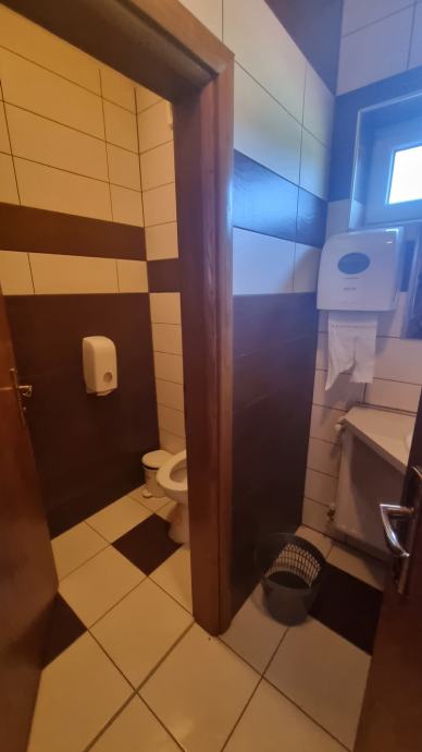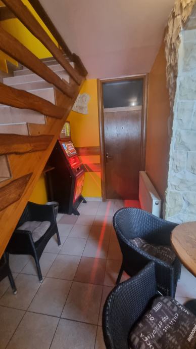 Zgrada se sastoji od 2 poslovna prostora u prizemlju i to kafića koji se sastoji od 2 prostorije i 2 wc-a i trgovine koja se sastoji od 2 prostorije i wc-a, 6 soba, kuhinje i 5 kupaonica+5 wc-a na katu zgrade,balkona i terase.