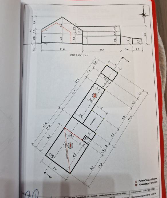 Na kući je podignut gornji kat identične kvadrture kao i donji dio kuće i pomoćne jedinice s mogučnošću uređenja još jedne stambene jedinice, trenutno bez stepenica.