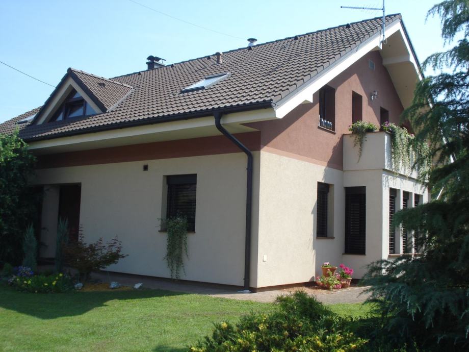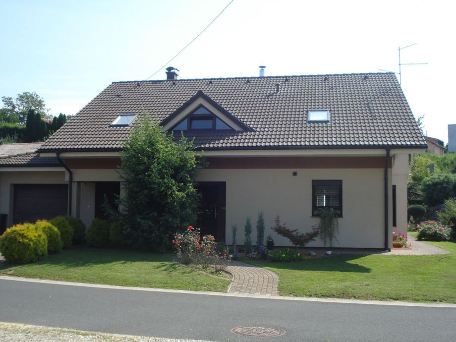 Prodaje se novija useljiva i održavana kuća u mirnoj ulici u blizini škole, dječjeg vrtića, doktora. Kuća se sastoji od prizemlja i visokog potkrovlja. U prizemlju kuće je hodnik, WC, soba, kuhinja, špajza, blagovaona, veliki dnevni boravak sa kaminom i izlazi se na natkrivenu terasu a u produžetku dvorišta je drvena sjenica 8m x 4m. U visokom potkrovlju je dnevni boravak, 3 velike sobe, 1 manja soba, garderoba, kupaona. U sklopu kuće je garaža. Od priključaka ima struju, vodu, plin (centralno grijanje i grijanje na kamin). Vlasništvo je čisto i bez tereta!