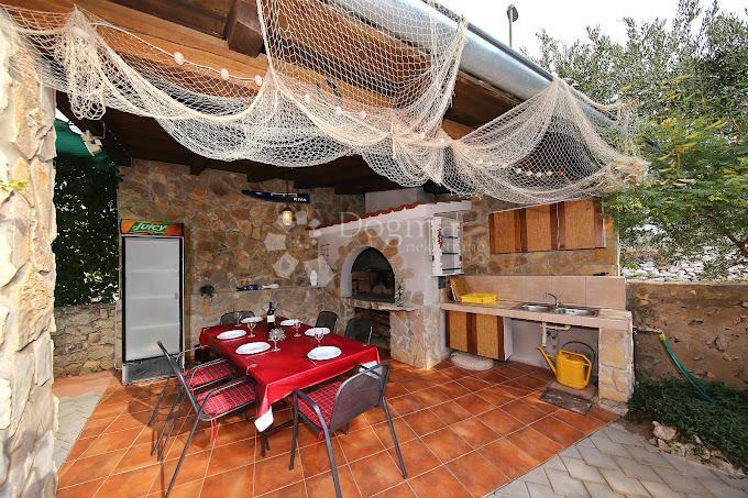 Na dvorištu se nalazi prostor sa kuhinjom, dva velika stola, roštiljem i ražnjem te veliki frižider gdje se ljeti turisti mogu družiti.