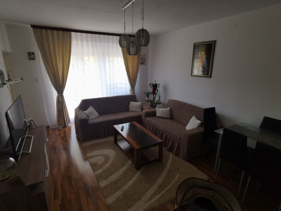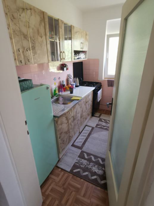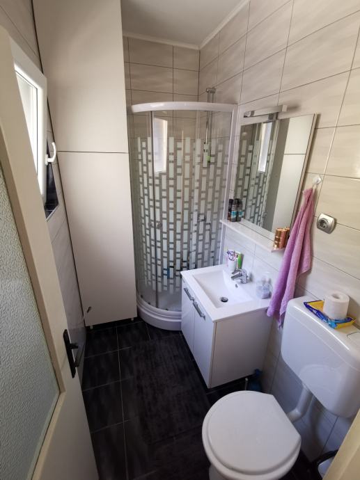 Etaža prizemlja se sastoji od ulaznog hodnika, male ostave, novouređene wc/kupaonice sa tuš kadom, kuhinje, spavaće sobe i velikog dnevnog boravka iz kojeg se izlazi na prostranu terasu (16m2), okrenutu jugo-istoku, sa koje se prilazi dvorištu/vrtu iza kuće.
