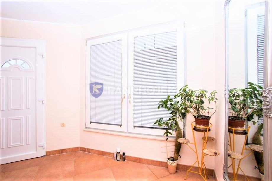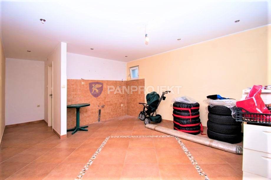 Stambena površina iznosi 130 m2, koju čine 2 odvojena stana (svaki stan ima svoj zaseban ulaz), namješteno je i odmah useljivo. Prizemlje od 60 m2 sastoji se od dnevnog boravka, kuhinje s blagovaonom, spavaće sobe, kupaone i praone. 1. kat od 70 m2 sastoji se od dnevnog boravka, 2 spavaće sobe, kuhinje s blagovaonom, kupaone i balkona, klimatizirano. Postoji i mogućnost dodatne prostorije u potkrovlju (16 m2).