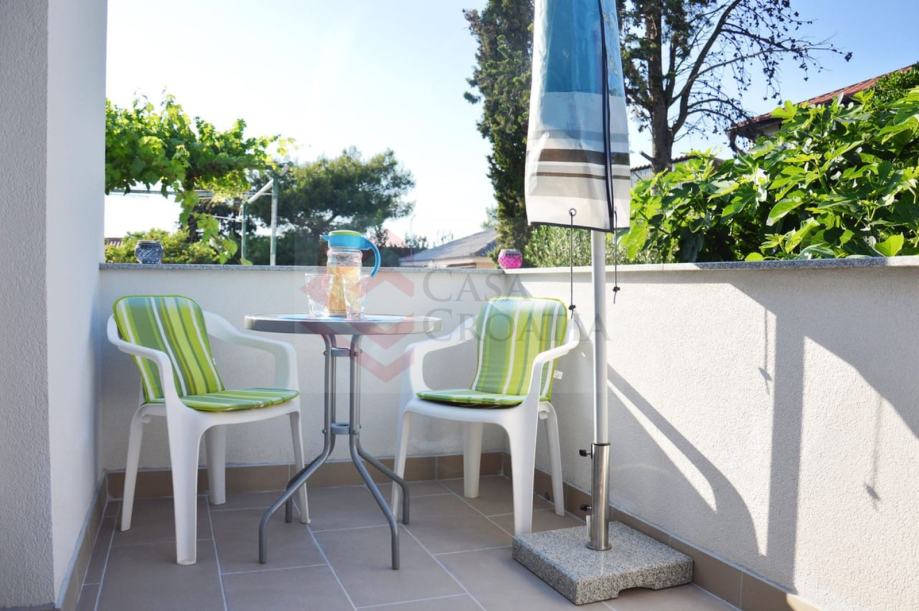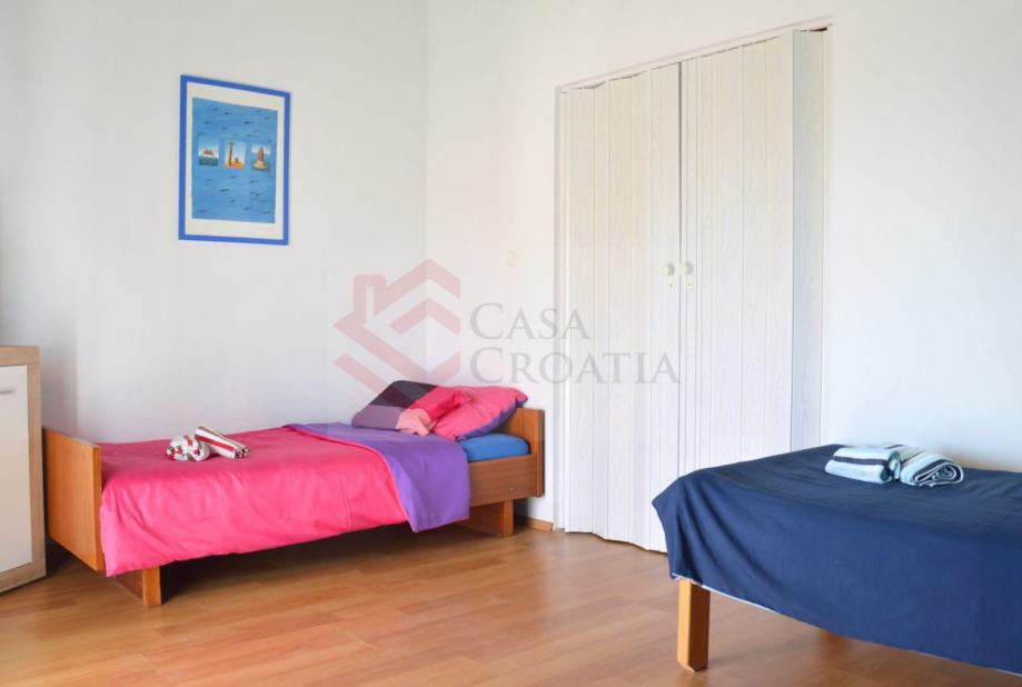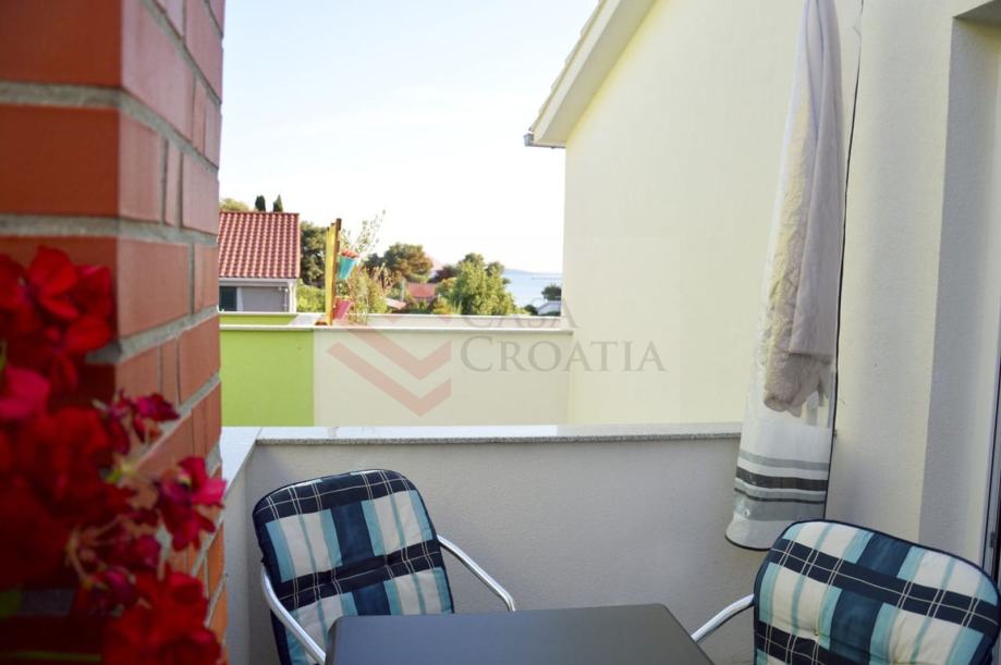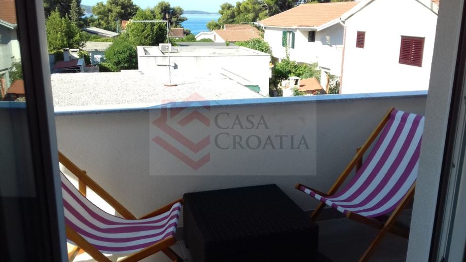 Prvi kat sastoji se od kuhinje s blagovaonicom i ima izlaz na terasu, velike sobe koja gleda na more kao dnevna soba koja ima izlaz na zasebnu terasu i spavaća soba koja ima izlaz na terasu. Svaka prostorija ima izlaz na svoju terasu. Kupaona ima kadu.