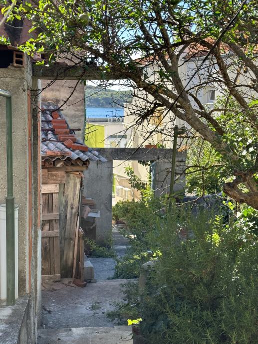 Na odličnoj mirnoj lokaciji poviše osnovne škole u Crnici, 10 minuta od gradske plaže Banj, 5 minuta šetnje od rive, prodaje se obiteljska kuća s okućnicom 216 m2. Pogled na more.