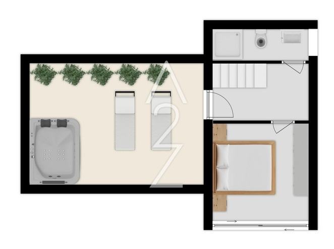 Druga etaža posvećena je privatnosti i luksuzu. Sastoji se od još jedne spavaće sobe koja nudi intimnost i udobnost, dodatne kupaonice s toaletom te prekrasne terase koja je pripremljena za ugradnju jacuzzija. S terase se pruža očaravajući pogled na more, idealan za opuštanje uz zvuk valova i svjež morski zrak.