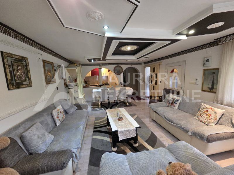 Kuća se sastoji od 4 sobe, 2 kuhinje sa blagavaonicom , 2 kupaonice+2 wc-a , balkona i terase.