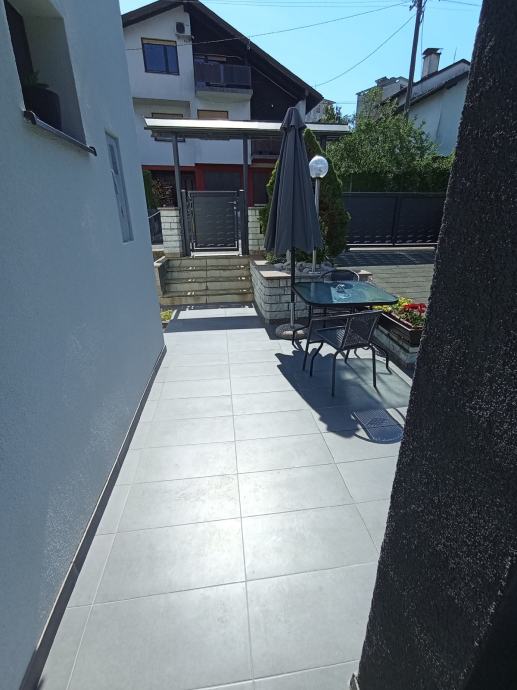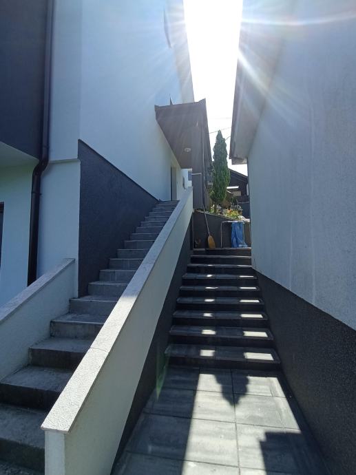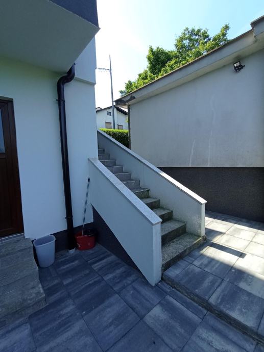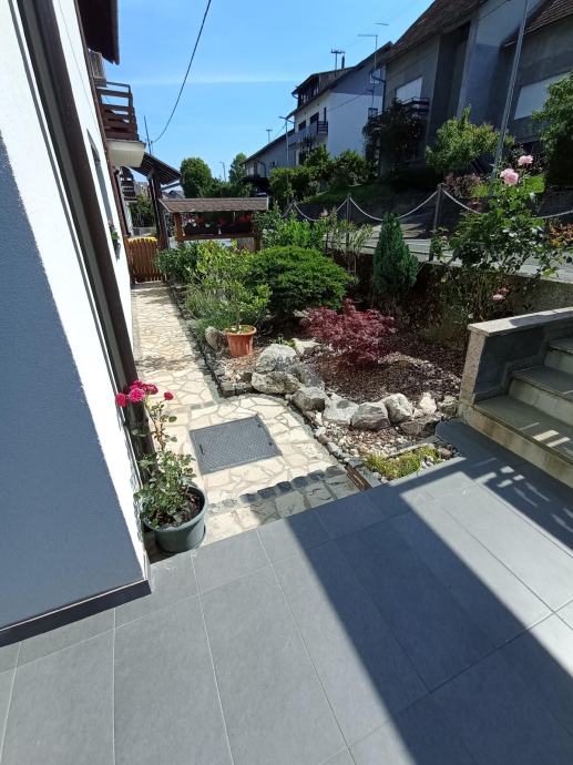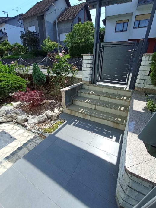 Vanjski prostor: Kuća se nalazi u mirnoj, slijepoj ulici i okružena je zelenim dvorištem s nekoliko posađenih voćaka, idealnim za opuštanje i igru djece.