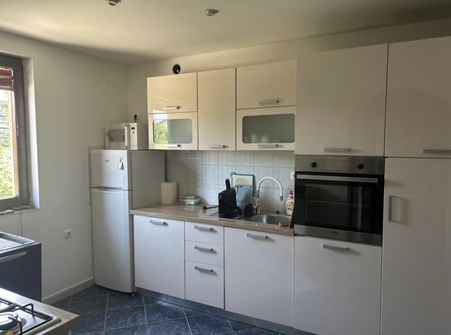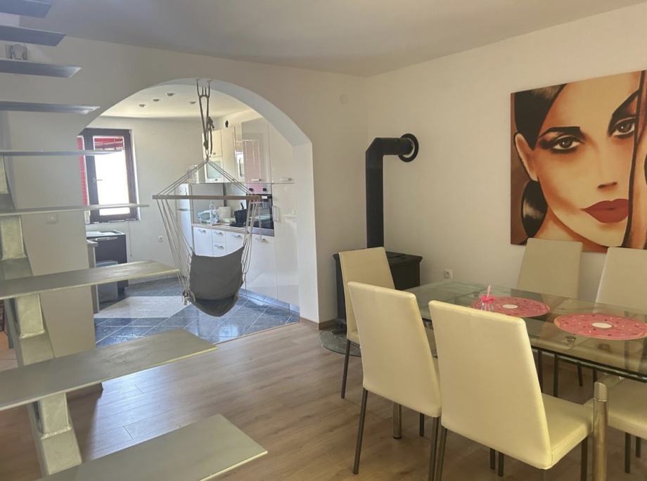 Prizemlje kuće se sastoji od predsoblja, ulaznog hodnika, smocnice, open space kuhinje sa blagovaonicom i dnevnim boravkom, spavaće sobe i kupaonice. Kat je otvoreni prostor i može se po potrebi pregraditi i prilagoditi osobnim potrebama. Sama kuća ima 140 kvadrata, vrtna kućica 43 m2, dvorište 500 te oranice 397. Kuća je u potpunosti renovirana 2007. (novi unutrašnji zidovi osim nosećeg, nove podne podloge, instalacije struje i vode, stolarija-drvo). 2022 godine je uredeno potkrovlje, renoviran krov na kući i stavljeni veliki krovni prozori 4 kom, te je napravljena termo fasada. Cijela kuća se grije jednom peći na drva što je i više nego dovoljno te se na godinu potroši oko 7 metara drva. Kuca je namjestena sa svom bijelom tehnikom te klimama koja su postavljene u dnevnom boravku i potkrovlju. Iza kuće je vrtna kucica, tj. uređena konoba s pecanom, ostavom, vanjskim wc-om i sudoperom. Uz konobu je natrkivena terasa. Dvorište je jako prostrano (500 kvadrata) te je jedna polovica posuta šljunkom, a na drugoj je trava. Iza se nalazi još 397 kvadrata oranica-livada. Za dodatne informacije zvati na broj 098 964 9448.