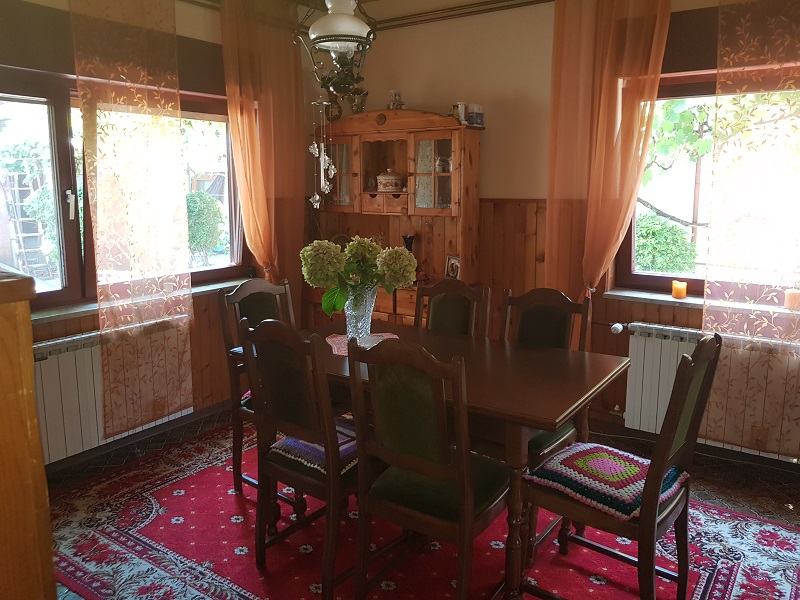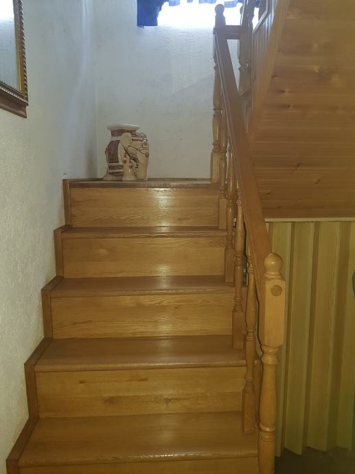 Kuća se sastoji od 4 sobe,kuhinje,kupaonice+wc,jednog zasebnog vanjskog wc-a i balkona.