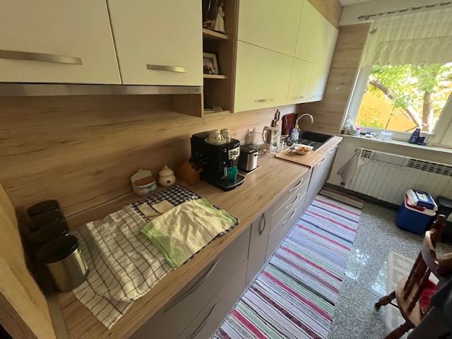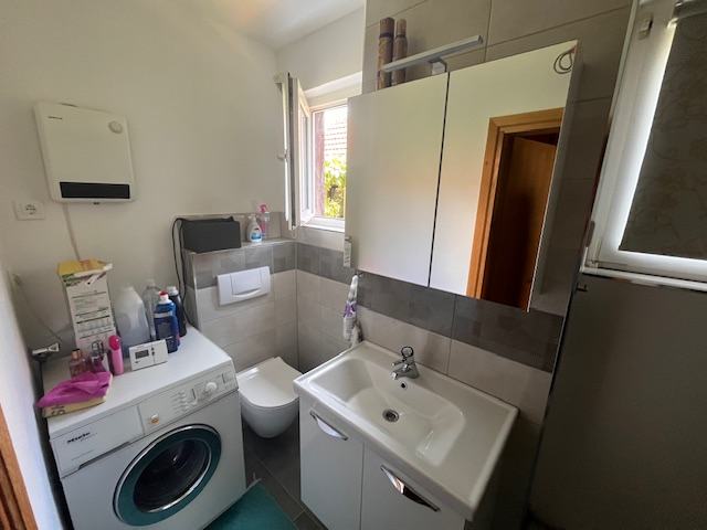 Prodaje se velika, kvalitetna, samostojeća kuća na naselju Šestinac. Kuća je izgrađena na placu od cca 1750 m2, sa 17 m širine fronte. Građena 1982.g., adaptirana prije 3-4 godine. Izvedena kao katnica, koja u prizemlju sadrži zatvorenu verandu, ulazni hodnik, kupaonicu, sobu, dnevni boravak, kuhinju sa blagovaonicom i ostavu, a na katu tri spavaće sobe, balkon, manju sobu (vešeraj) i kupaonicu. Tavan je visok, sa ulaznim stubištem, u koji je dovedena voda i odvod, krovište podaskano, hidroizolacija, građa solidna, te se po potrebi može prenamjeniti u dodatni stambeni ili sl. prostor. Zidana je sitnom ciglom, obložena stiroporom 5 cm i termožbukom. Podovi su parket, keramika i na katu dijelom laminat, sve u odličnom stanju, kupaonice nove (keramika, voda, odvod, sanitarije). U prizemlju novija nutarnja stolarija. Vanjska stolarija PVC sa roletama. Grijanje plinsko-etažno.