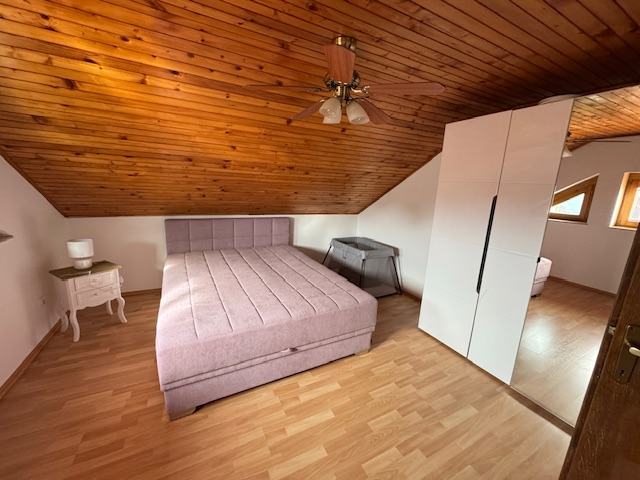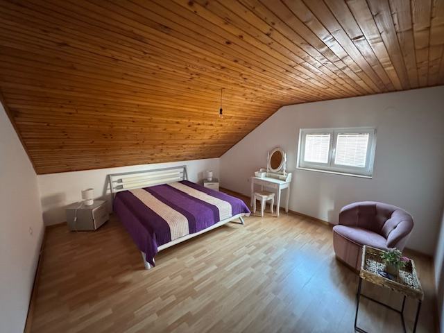 U potkrovlju tri sobe i kupaonica.