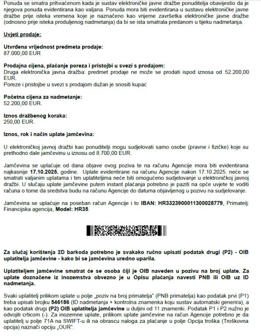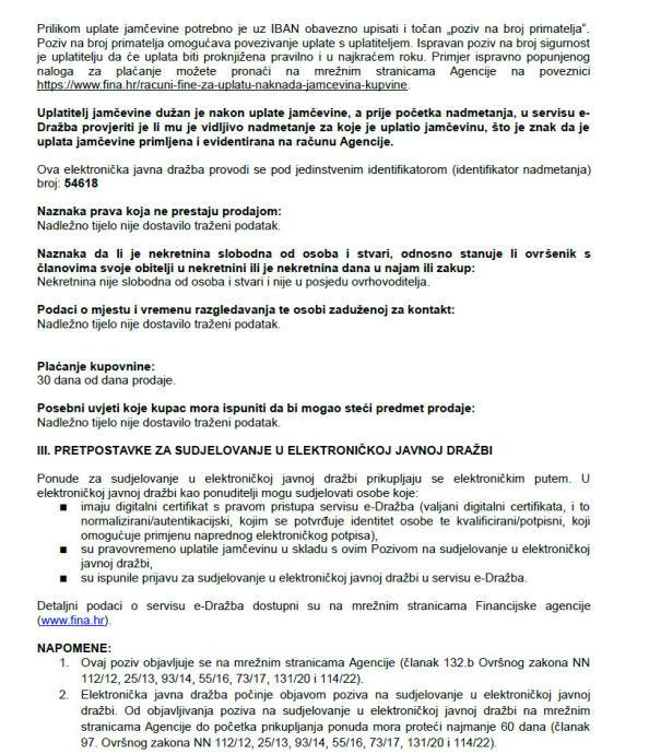 Pozivaju se ponuditelji da pristupe elektroničkoj javnoj dražbi za predmet prodaje prema uvjetima kako