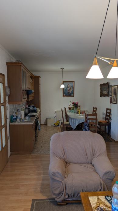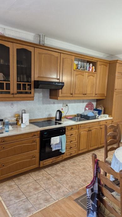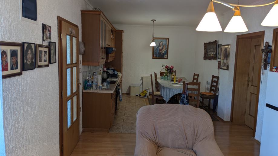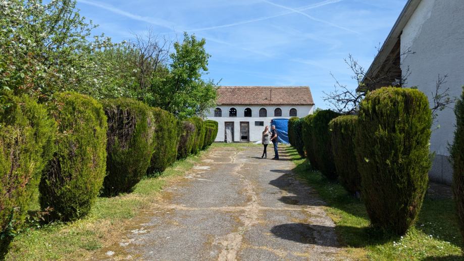Cijeli posjed je 6832qm. Kuća sa centralnim grijanjem na plin otprilike do 80qm stambenog prostora, oranica 5800qm + voćnjak, pomoćne zgrade dvorišna i šupa + car port za dva auta. Krov rađen 2000 godine, grijanje i voda. Uz kuću i ima i bunar koji se prije koristio za piće, sada koristi za zalijevanje vrta itd. Dvije spavaće sobe, dva dimnjaka koji se mogu koristiti za peć na drva. Kuća je useljiva, namještaj po dogovoru uz tu cijenu. 190.000€