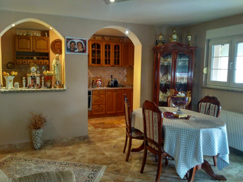Prodaje se velika lijepa katnaica na mirnoj lokaciji, u naselju Matije Ivanića. Kuća se sastoji od 4 etaže od kojih svaka može biti svoja stambena jedinica i svaka stambena jedinica može imati svoj ulaz. Suteren kao etaža je potpuno i ekskluzivno uređen i sastoji se od kuhinje, ostave, sobe, kupatila i velikog prostora koji je blagavaonica i dnevni boravak. Na visokom prizemlju je ista stambena jedinica koja se sastoji od hodnika, kupaonice, dvije sobe, kuhinje s blagavaonicom i dnevnim boravkom, i ogromnom terasom, potpuno sređeno. Na prvom katu je isto sređen sta sređen prostor za stan koji nije namješten, a sastoji se od dvije sobe, kupaonice, kuhinje i dnevnog boravka i velike terase. U potkrovlju su provedene sve instalacije za stambeni prostor, pripremljeno sve u visokom roh bau stanju. Uz kuću nalazi se i lijepo održavano dvorište i mjesta za parkiranje.