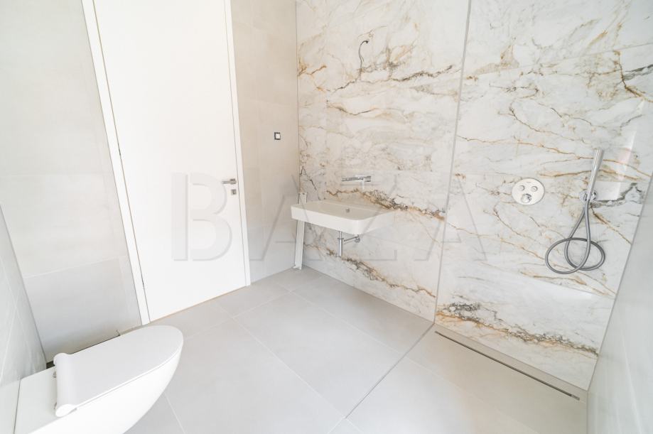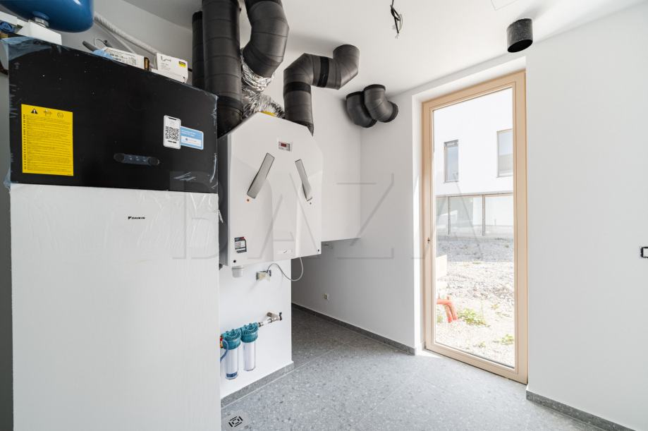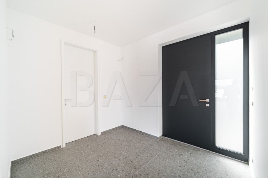 Posebna pažnja je posvećena udobnosti - na terasi su već pripremljene priključke za vodu i struju, što omogućuje postavljanje ljetne kuhinje. Kuća je opremljena klimatizacijskim uređajem, a okolna terasa bit će izvedena od terrazzo betona.