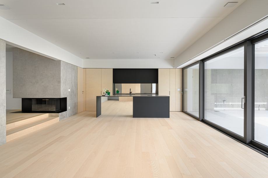 Vila je građena vrhunskim materijalima najviše kvalitete. Vila je betonske konstrukcije s pregradnim zidovima od opeke s izvrsnom zvučnom izolacijom. Podne obloge su lakirani i četkani parket od bijeljenog jasena, kao i unutarnja vrata sa skrivenim osadima i nadstandardne visine. Stepenice su betonske sa drvenom ili teraco oblogom. Kuhinjski i kupaonski namještaj izrađen je od punog drva. Dnevni boravak je ukrašen detaljno izloženim betonom. Zidne obloge u dnevnom boravku i na stubištu su od drveta breze. Podovi terasa i vanjskih stepenica izvedeni su u teraco sistemu. WPC podovi. Vanjske zidne obloge od ariša obojene su Silverwood bojom. Namještaj je vrhunske kvalitete; alu Schuco prozori, protuprovalna vrata, drvene grilje, vanjske screen rolete odn unutarnje rolete. Krov je ravan i zasađen ukrasnim rastinjem, izrađen po najvišim standardima i izuzetno izolativan.