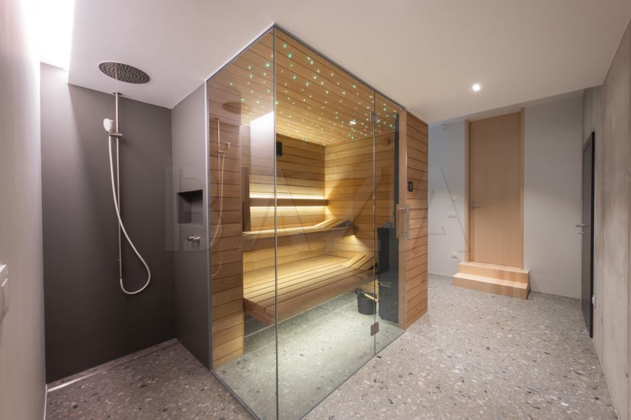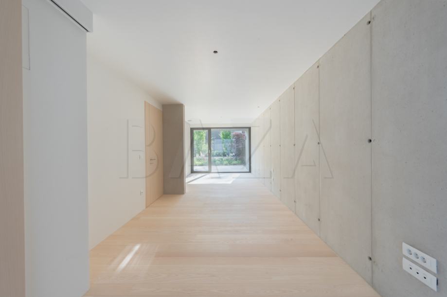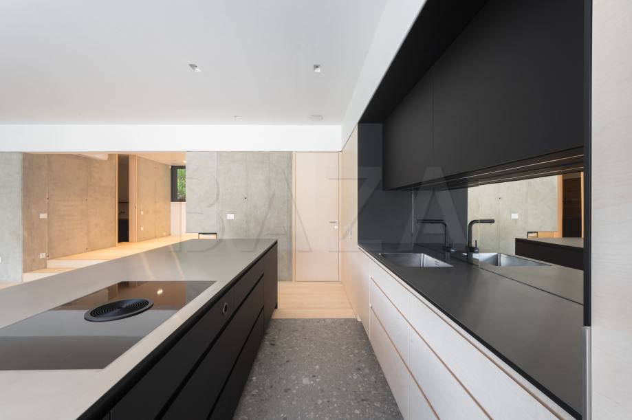 Raspored prostorija omogućava nadstandardno stanovanje na tri etaže. U prizemlju ulazimo u veliki ulazni hol iz kojeg se izlazi u dnevni boravak s panoramskim prozorima i modernom kuhinjom rađenom po mjeri. U prizemlju se nalazi i spa centar sa saunom, tušem i opcijom unutarnjeg bazena, te ostava s bojlerom. Priključci za ljetnu kuhinju i roštilj su dostupni na terasi ispred dnevnog boravka. Iz vrta je moguć pristup garaži i dodatnom spremištu. U vrtu je moguće postaviti vanjski bazen.