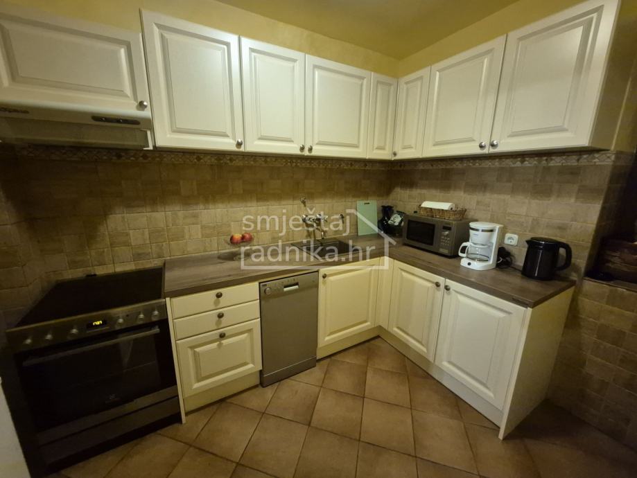 Raspolaže opremljenom kuhinjom i blagovaonicom, tri kupaonice i jednim malim wc-om, tri spavaće sobe sa po dva odvojena kreveta i vanjskom terasom.