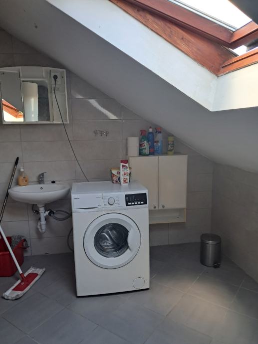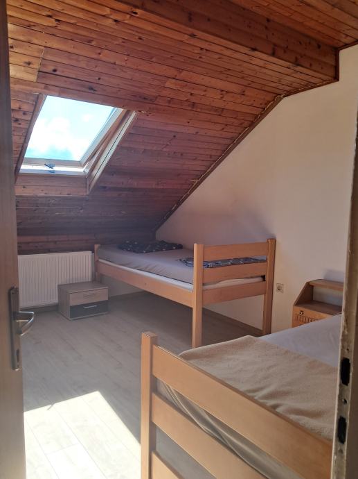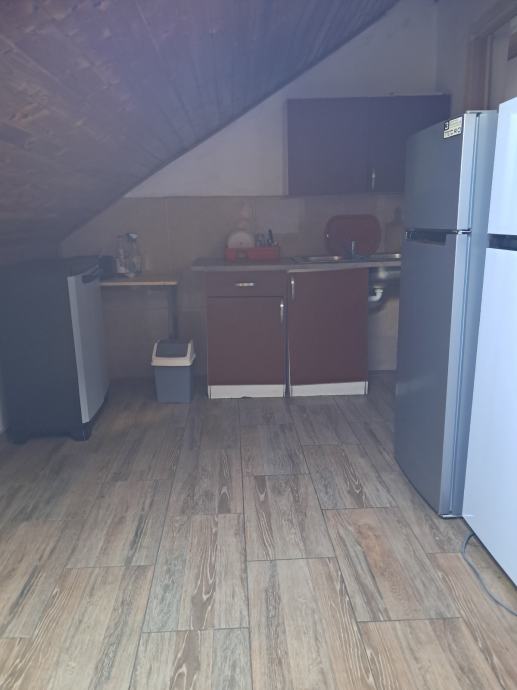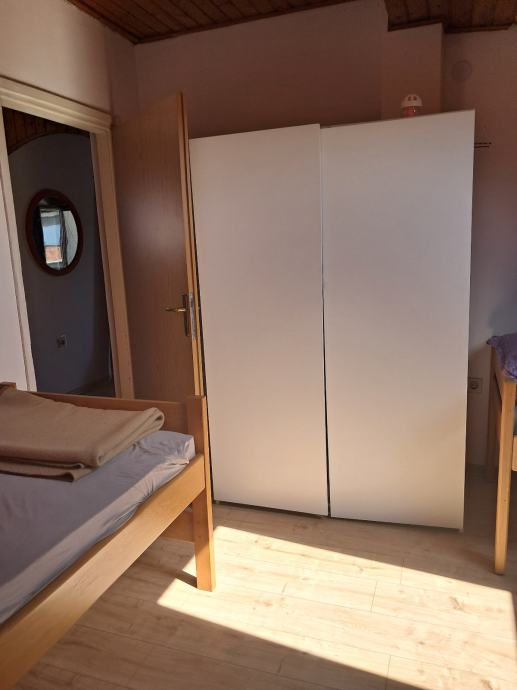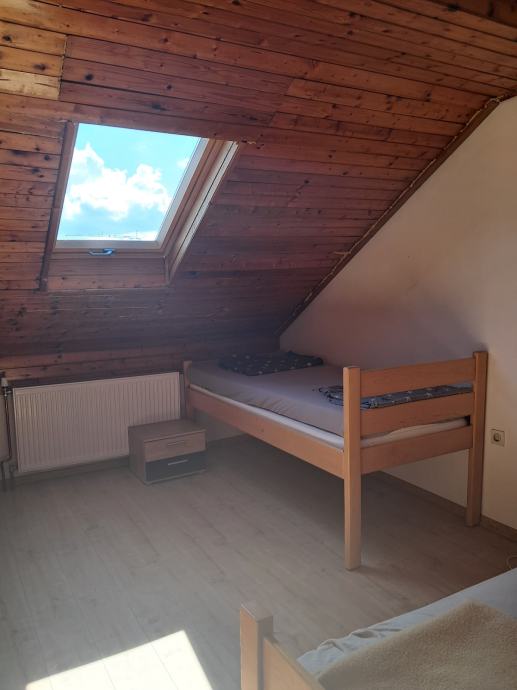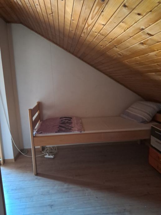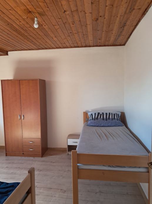 Potkrovlje kuće, 3 sobe, zaseban stan za smještaj do max 9 osoba.Centralno grijanje, klima, perilica rublja, kupaonici s tuš kadom. Kuhinja opremljena s 2 peći i dva hladnjaka. Tv, internet. Slobodno od 1. 09. cijena za 1 osobu na mjesec ili po dogovoru!!!