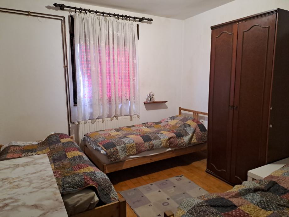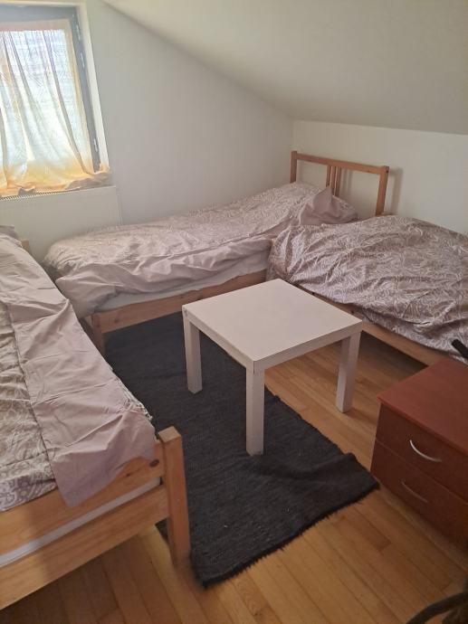 Iznajmlljujem jednu etažu kuće u Gradićima, lokacija odlično prometno povezana. Kuća se nalazi preko puta željezničke stanice Velika Gorica, 2 min autom od Auto Zubaka. Stan ima cca 100 m2, 3 spavaće sobe s ukupno 9 kreveta (nisu kreveti na kat!), kuhinju + dnevnu sobu, 2 kupaonice, jedna s WC + 1 odvojeni WC, ves masinom, balkon. Ima Wi-FI sa signalom u svim sobama, optički internet, samostalno centralno grijanje, klimu. Moguć ugodan smještaj do 9 ljudi. Režije su uključene u cijenu najma. Uključena promjena posteljine i čišćenje. Pred kućom slobodan parking. Nema agencijske provizije. Mogućnost prijave boravka.