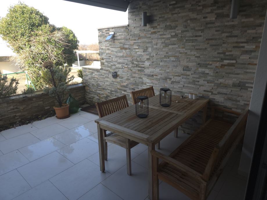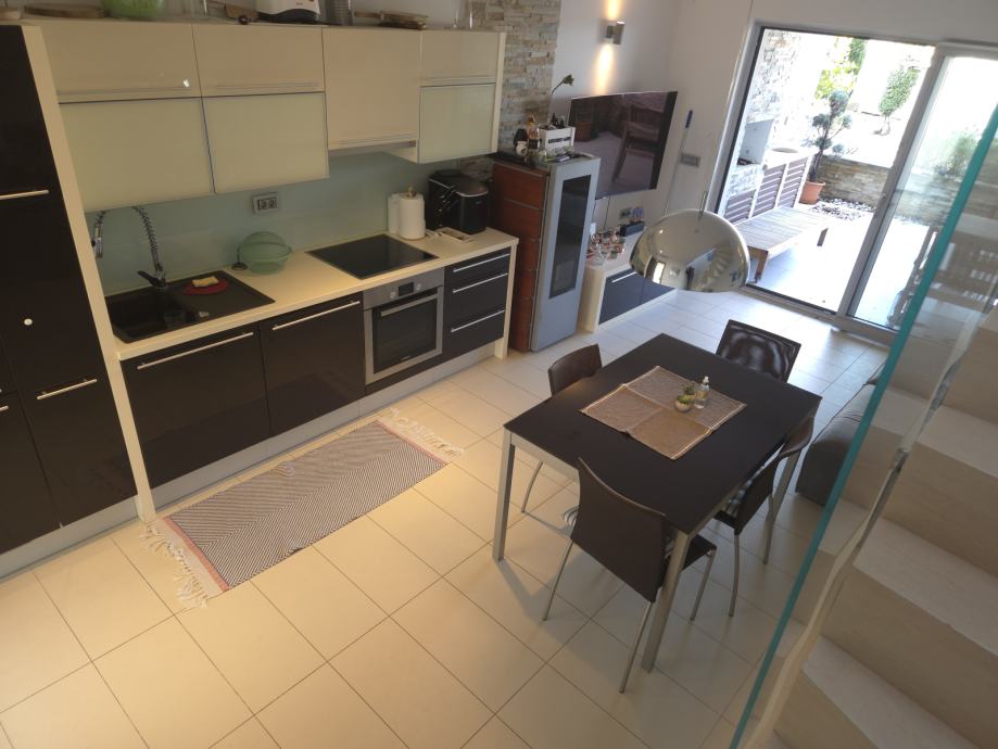 Novi Vinodolski -Smokvica , kuća u nizu s 2 terase , djelomičnim pogledom na more , kompletno namještena i opremljena , nalazi se u rezidencijalnom dijelu mini komplexa kućica u nizu. Objekat ima i garažu , nalazi se svega 100 koraka od uređene plaže , miran predio , idealan za ljetni odmor , nema gužve ni prometa tako da se djeca mogu bezbrižno igrat u okruženju. Kućica vrijedna ogleda !!