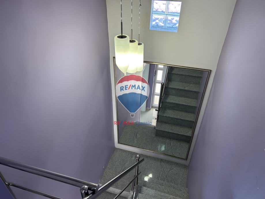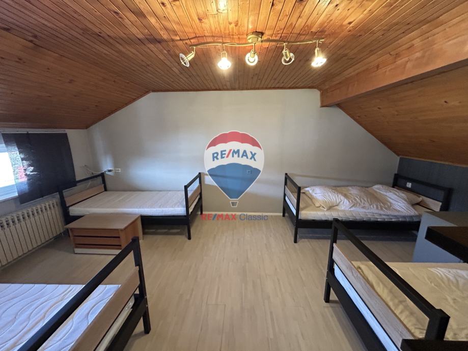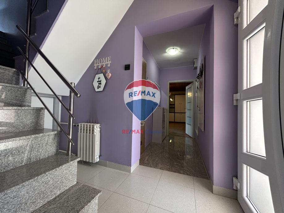 Kuća s više katova prostire se na 220 m2 stambene površine i smještena je na prostranom zemljištu od 530 m2. Uživajte u životnom prostoru koji uključuje 10 soba, 4 sanitarna čvora i 2 zasebna apartmana. Dvostruka garaža nudi prostor za dva automobila, dok dodatna četiri vanjska parkirališna mjesta pružaju korisnu pogodnost za goste.