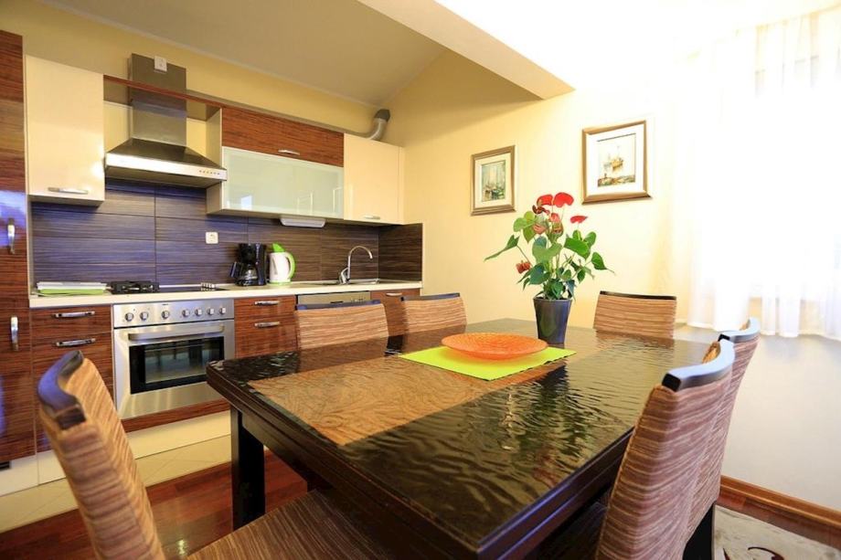 Ova prostrana apartmanska vila površine 350 m² proteže se kroz prizemlje i tri kata. Sadrži ukupno 9 spavaćih soba, četiri kupaonice i dodatni wc te je u potpunosti klimatizirana.