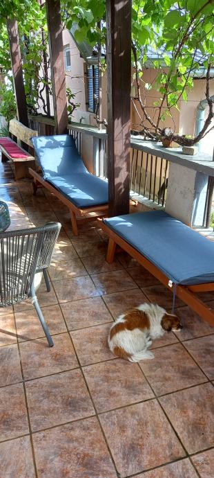 Kuća je 70m od obiju plaža,1/1,namještena(novi aparati),dvoriste,pomoćni objekt,parking,,ogromna terasa sa zidanim roštiljem...