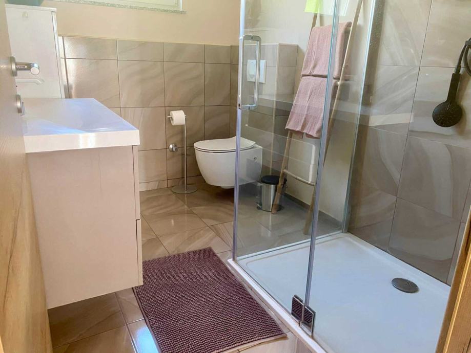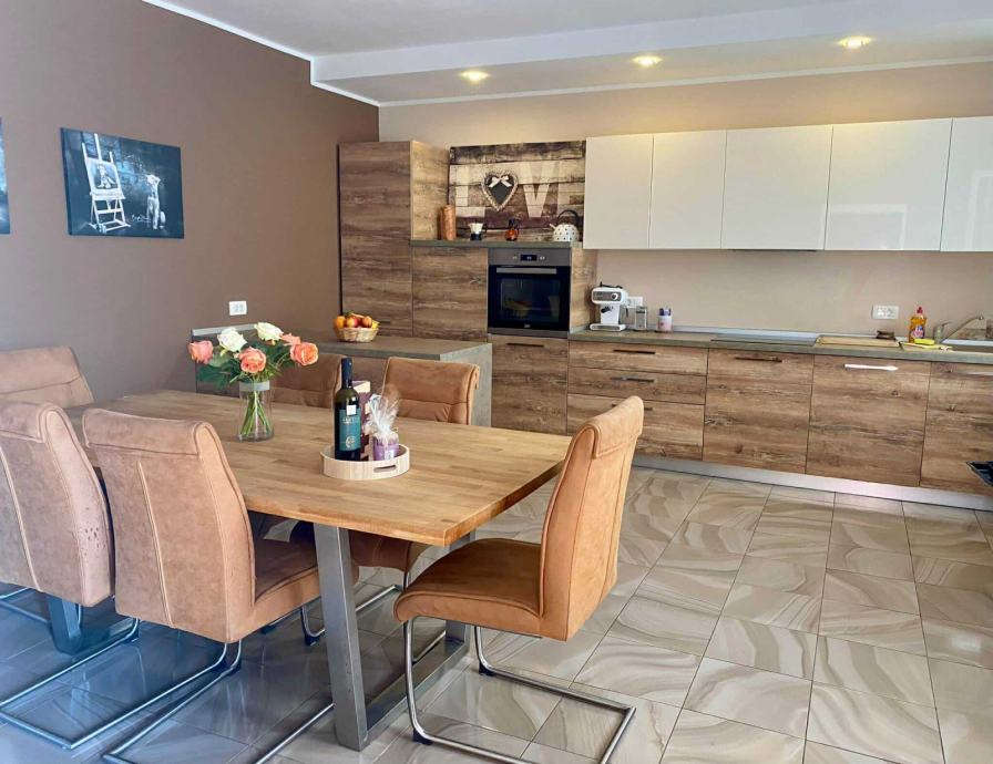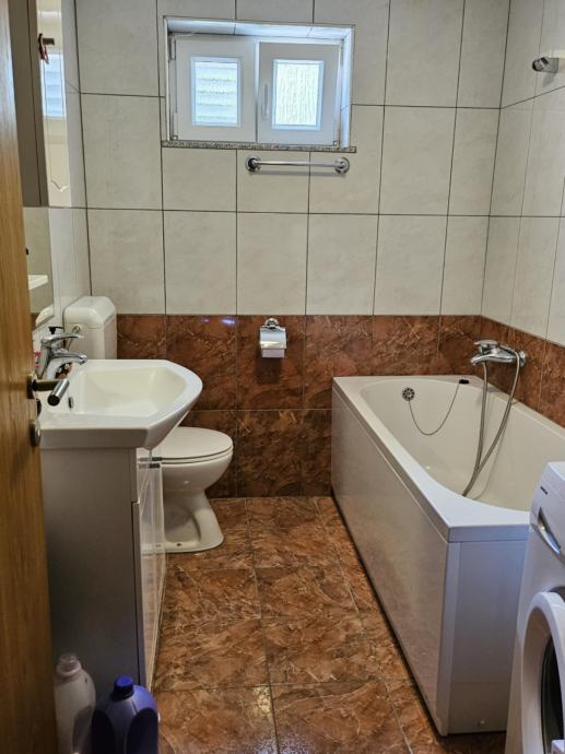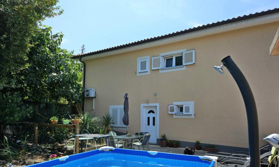 Renovirana autohtona kamena samostojeća kuća sa dva stana i velikom okućnicom nalazi se u samom mjestu Soline 250 m od mora. Sastoji se od prizemlja gdje se nalazi četverosoban stan sa kuhinjom i dnevnim boravkom, 3 sobe, hodnik i 2 kupaonice, sa dva izlaza u prednje i stražnje dvorište, lako prenamijenjivo u 2 manja apartmana. Na katu se nalazi veliki trosoban stan, sa kuhinjom i blagavaonom, dnevnim boravkom, 2 sobe, kupaonicom i malom prostorijom za perilicu rublja, te velika terasa sa predivnim pogledom prema prirodi i moru. Na lijepo uređenoj okućnici nalazi se prostor za sjedenje sa kaminom, parkirna mjesta za 5 automobila, garaža, te još iza kuće veliki dio okućnice gdje se može smjestiti po želji i veliki bazen.