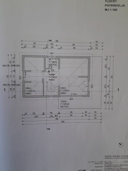 NA VISOKOM POTKROVLJU SU:Hodnik 3,80m2, dvije sobe 17,60m2 i 10,50m2, ova veća ima izlaz na balkon od 16,90m2 i wc 1,80m2