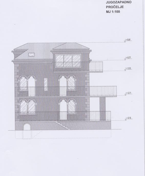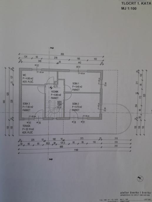 NA PRVOM KATU SU: Hodnik 6,60m2, tri sobe 9,75m2, 8,40m2 i 7,65m2 dvije imaju izlaz na balkon od 22,10m2 i kupaonica 4,80m2.